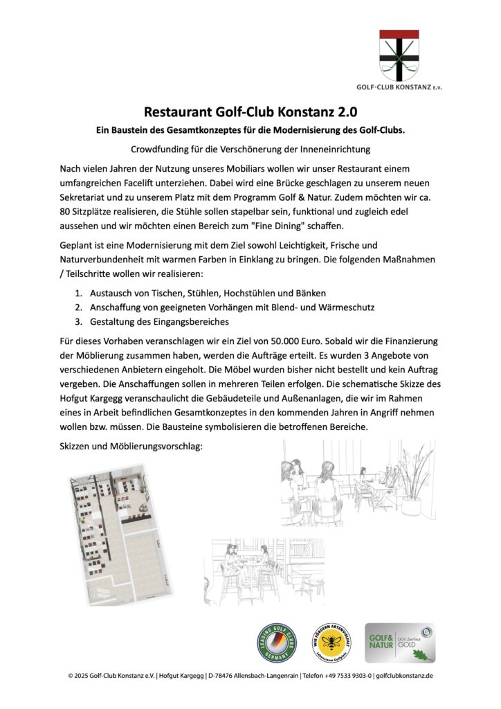 Crowdfunding für Restaurant im Golf-Club Konstanz e.V.